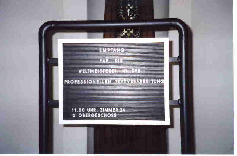 Seit wenigen Wochen haben wir nun in unserer Stadt eine neue Weltmeisterin, nämlich eine Weltmeisterin in der "Professionellen Textverarbeitung".