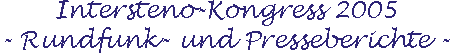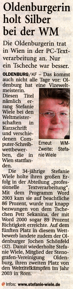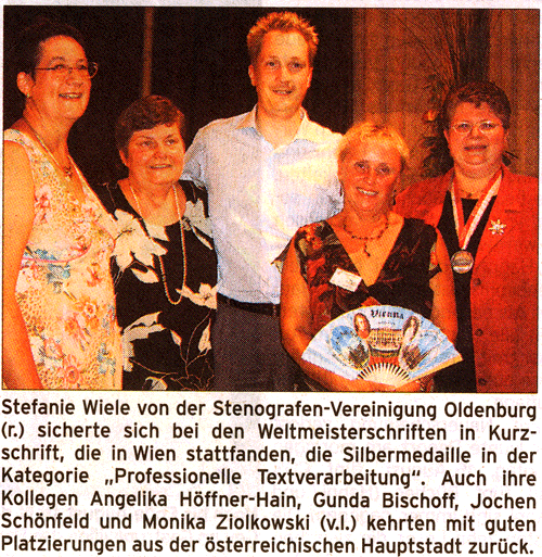Erster Berichterstatter über die Oldenburger Erfolge beim Intersteno-Kongress 2005 war erneut Radio NDR1; am Montag, 1. August 2005, wurde in den 15:30-Uhr-Nachrichten folgender Beitrag gesendet: "Oldenburg - Die professionellste Sekretärin Deutschlands kommt aus Niedersachsen. Bei der Stenografie- und Textverarbeitungs-Weltmeisterschaft in Wien gewann die Oldenburgerin Stefanie Wiele die Silbermedaille in der Disziplin 'professionelle Textverarbeitung'. Die Goldmedaille ging nach Tschechien.". Folgende weitere Presseberichte sind erschienen: