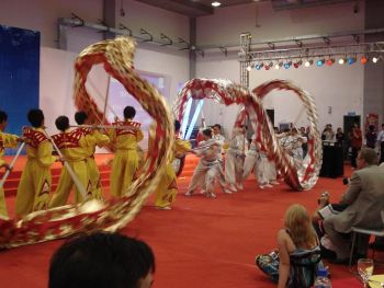 Nachdem der erste Bus gegen 20:30 Uhr zum Hotel gefahren ist, ging die Party erst so richtig los. Da die Musik der chinesischen „Band“ zunächst nur für magere Stimmung sorgte, übernahm die türkische Landesgruppe die Regie. Innerhalb weniger Sekunden war die Tanzfläche – animiert von Michael Rodriguez – gerappelt voll. Die Hälfte der Gruppe probte sich im Bauchtanz, aber auch „normaler“ Pop usw. wurden geboten. Quasi unbemerkt wurden allerdings parallel schon sämtliche Tische ab- bzw. weggeräumt. Alles, was nicht niet- und nagelfest war, wurde mit den Tischdecken zusammen weggeworfen. Leider gingen dabei auch Urkunden sowie bereits fertig geschriebene Ansichtskarten verloren. Nachdem geklärt war, dass Ersatzurkunden ausgestellt werden, wurde kräftig weiter gefeiert und zu später Stunde nassgeschwitzt der letzte Bus zum Hotel genommen. Bis tief in die Nacht tauschten alle noch an der Hotelbar ihre genialen Erlebnisse und Erfolge aus. Morgen geht es dann um 09:30 Uhr mit dem Bus zum Flughafen und kurz nach 18 Uhr werden wir in Frankfurt landen. |