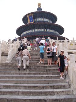 Den langen Flug haben wir einigermaßen gut überstanden, das Essen an Bord war o. k., auch wenn man erstmal die Frage des Personals "fischohrdak" nicht so richtig verstanden hat ;-) Auch den Schweinegrippe-Verdacht konnten wir am Pekinger Flughafen gerade noch entkräften - ich und eine weitere Teilnehmerin aus unserer Gruppe mussten doch glatt zum Fiebermessen!!! Als ob es unnormal ist, bei gut 32 Grad und tierisch hoher Luftfeuchtigkeit mit rotem Kopf herumzurennen ... Samstag, 15. August 2009: News aus Beijing Heute haben wir nun unseren ersten Tag in Beijing erlebt: Stadtrundfahrt mit Halt am Platz des Himmlischen Friedens, Kongresseröffnung und Instruktion für den Wettbewerb.