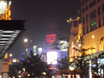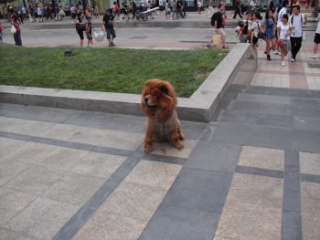 Heute abend waren Sylvia und ich dann noch zur "Wangfujing Dajie", Beijings Haupteinkaufsstraße. Dort haben wir u. a. einen kleinen Löwen gesehen (oder war es doch "nur" ein Chow-Chow?) und das Kaufhaus "Intime Lotte" (nein, wir waren nicht drin und wissen auch nicht, was dort verkauft wird).